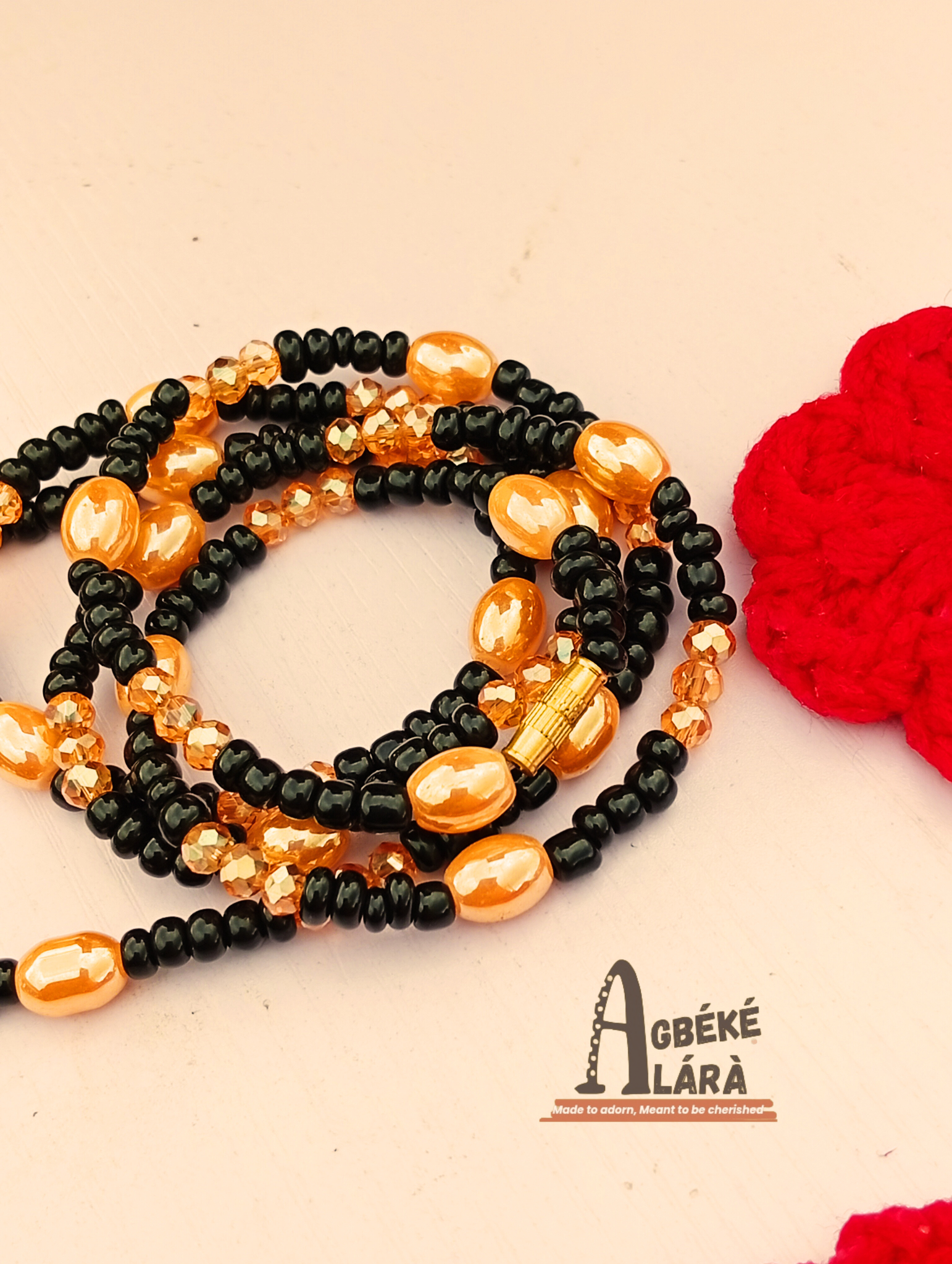 Buy Ẹwà Waist Bead: Black & Gold Elegance on Agbéké Alárà by Khallmhie Emporium